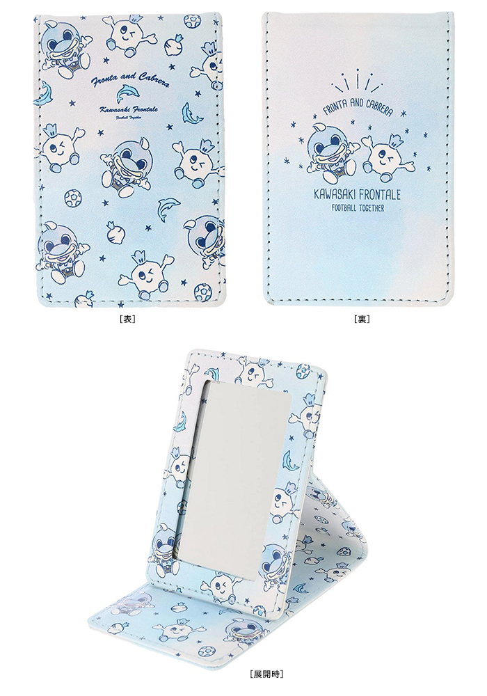 サッと身だしなみをチェックする際に活躍する折りたたみミラー。優しい水色をベースにしたマスコット達のデザインが女性人気間違いなし!コンパクトなサイズなのでポーチに入れても荷物にならずに持ち運び楽々。