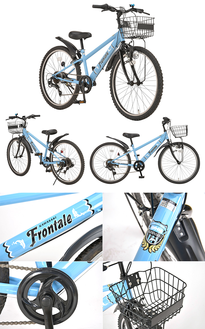 カッコいいフロンターレ自転車が欲しい!という子供向けにどーん!と大きくフロンターレロゴを入れたデザインのジュニアマウンテンバイクを。フロントバスケット、ライト、鍵を標準装備しているので、お子さんにも安心して使用していただけます。