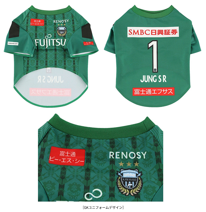 愛犬にお気に入り選手のネーム・ナンバーが入ったウェアを着せこみ、フロンターレファミリーの一員に!