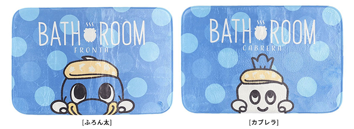 ご自宅でのリラックスタイムのおフロ(風呂)。さらさらとした触り心地に加え、クッション性のあるバスマット。また、マスコットもゆっくりとおフロ(風呂)に浸かっているデザインです。