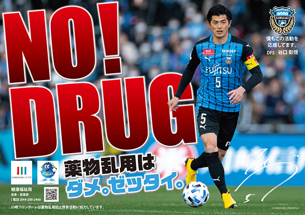この度、川崎市健康福祉局が製作する薬物乱用防止啓発ポスターに、当クラブの谷口彰悟選手が採用されましたので、お知らせいたします。