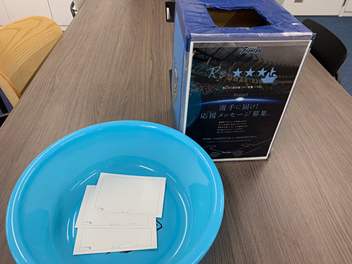 いただいたメッセージはホームゲーム時に選手の見える位置に掲示します。