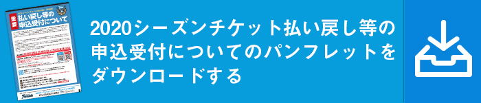 2020シーズンチケット払い戻し等の申込受付は、2020年7月6日(月)昼12:00~7月31日(金)昼12:00で実施いたします。詳細はパンフレットにまとめておりますので、必ずご確認の上、期間内に申込受付をお願いします。