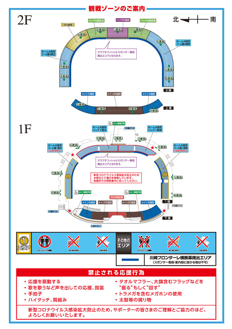 ※応援を扇動する行為や、声を出しての応援、手拍子等、禁止される行為を下記案内図に記載しておりますので、必ずご確認ください。