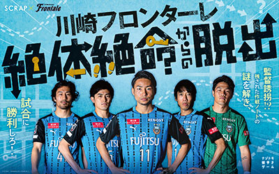| 実施内容 | 現在、武蔵小杉駅北口・新丸子駅周辺にて開催中のナゾトキ街歩きゲーム「川崎フロンターレ 絶体絶命からの脱出」のキットを等々力陸上競技場にて販売いたします。