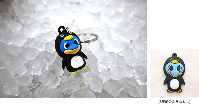 約8年の時を経て、『ふろん太ペンギンキーホルダー』が立体型に進化して新発売。南極大陸の住人であるペンギンになりきったふろん太をお楽しみください!