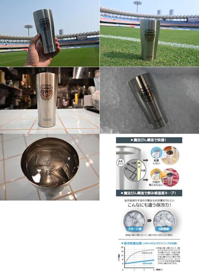 南極の氷…。ではありませんが、ご自宅で氷を長時間溶かさず、キンキンに冷えた飲み物が飲めるサーモスとのコラボタンブラー。魔法びん構造なので氷が長持ちし、約6時間後でも氷がまだ残っている状態になります。また熱い飲み物を入れても内側の温度が外に伝わらない構造なのでお子さんやご高齢の方にも安心してご使用いただけます。