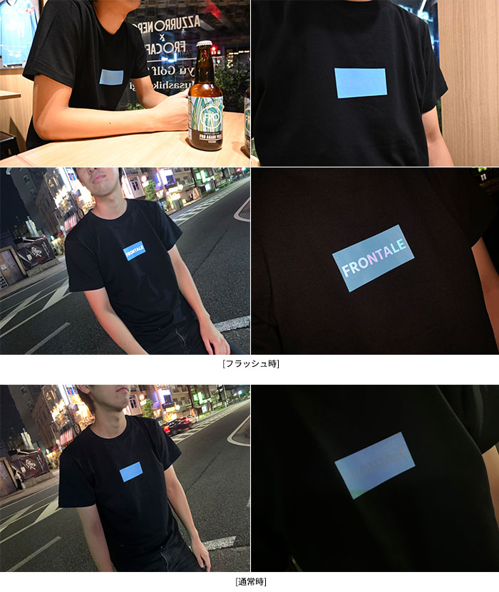 カメラなどのフラッシュを使用するとキラッ!とFRONTALEの文字が浮かび上がるデザイン。
