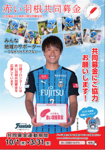 川崎フロンターレでは、社会福祉法人【神奈川県共同募金会】が本年度に実施する『赤い羽根共同募金』の川崎市内で行う募金運動に関して、今年度も協力することになりましたのでお知らせ致します。