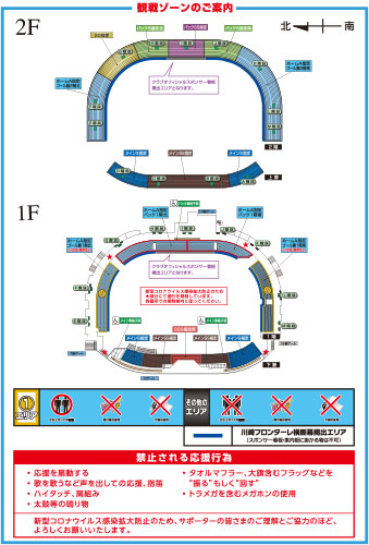 1階サイドスタンド(北側、南側)の立見席も含め、全席指定席での運用をいたします。