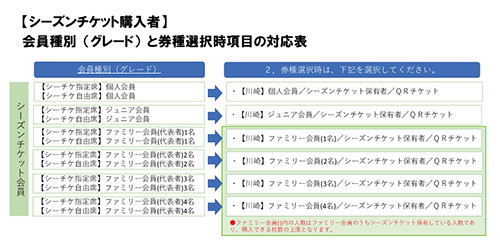 | 備考 | ・販売数に限りがございます。ご容赦ください。 ・ファミリー会員の方は、代表者の会員番号でご購入ください。 ※ファミリー会員で代表者がシーズンチケットを購入していない場合も、代表者の会員番号でご購入ください。 ・1週間前から販売開始のため、各販売期間が短くなっておりますのでご注意ください。 ・先行入場は付きません。 |