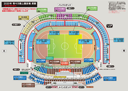 ◆Jリーグの方針に従った川崎フロンターレの座席配席について(この試合は【ステップ2】となります) 周囲との間隔を「1席以上」間隔をあけたうえで、席数の上限は「スタジアム収容率の50%」での運用となり、全ての座席が市松模様(前後左右1席空き)での配席とし席数の上限は「約12,000席程度」での運用となります。 |