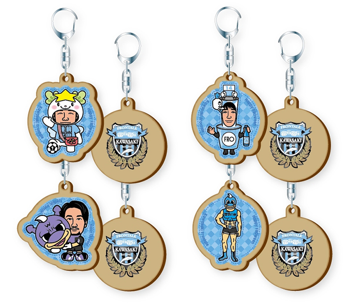 紙コースター同様、選手がいろいろな仮装をしているウッドキーホルダー。ふろん太は仮装というか‥。