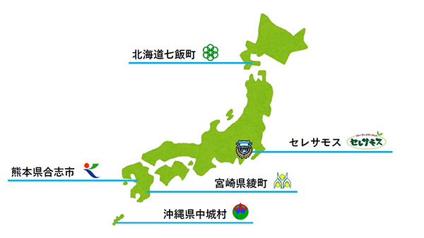 ※合志市との協定締結についてはこちら ●宮崎県綾町 ~年の始まりはいつもここから、綾町物産展~ シーズンスタート時にはいつもお世話になっている宮崎県綾町。新加入のメンバーも、まずはここでチームに溶け込んでいきます。今年のフロンターレも、綾町から始まりました!!フロンターレの選手たちの体を作っている綾町の名産品をゲットしましょう!!