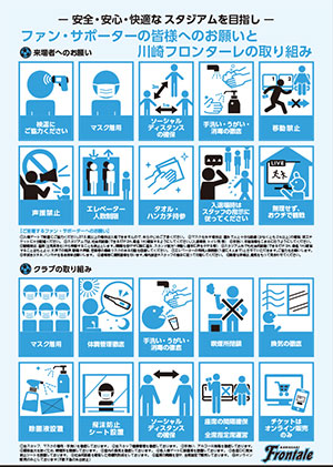 川崎フロンターレでは、新型コロナウイルス感染拡大防止を徹底し『安全・安心・快適』なスタジアムを目指し引き続き、尽力いたします。皆様のご理解とご協力をお願い申し上げます。