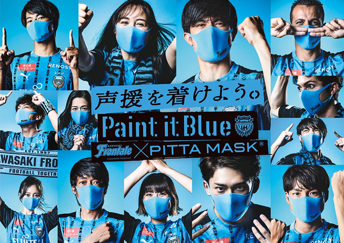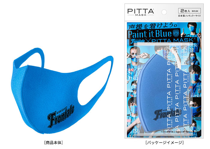 先日、後援会先行販売で大好評でしたフロンターレカラーのPITTA MASK REGULAR FRONTALE BLUE 2Pの一般販売をスタートします。 今回の特別なPITTA MASKは、ユニフォームとも相性抜群の フロンターレブルーに、クラブロゴを配置したシンプルなデザインです。