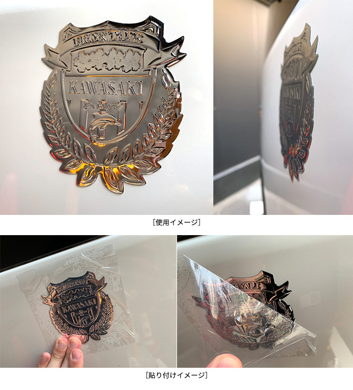 メタリックな質感がスタイリッシュなステッカー。好きな場所に貼って自分だけのオリジナルカスタムをお楽しみください!車に貼って街中でフロンターレサポーターアピールをしましょう。