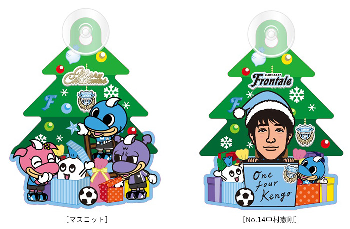 クリスマスシーズンもフロンターレと共に楽しく過ごしてもらえるグッズが登場!クリスマスツリーの形をしたサインなので車などにピタッと吸盤で付けてフロンターレサポーターアピールが出来ます。今回はマスコットデザインに加えて、特別に中村憲剛選手ver.を追加しました。