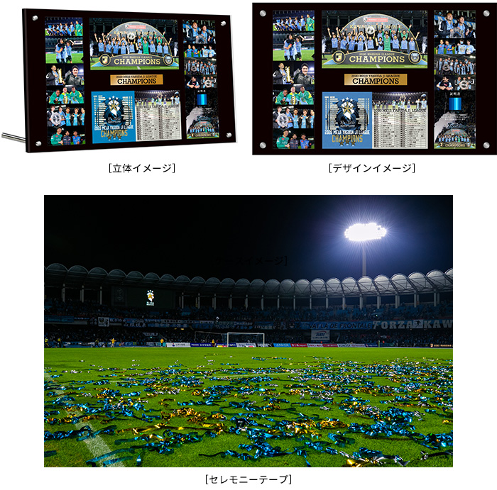 2020シーズンの印象に残った写真が散りばめられたフォトフレームは、写真を見てその当時の記憶が蘇ってくる記念グッズ。セレモニー時に舞ったテープを挟み込みいたします!