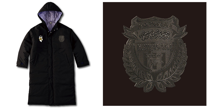 観戦時は意外と冷え込むからベンチコートが欲しい…。というサポーターの皆さんからのご意見から製作が決定!胸元にはブラックのエンブレムと優勝記念ロゴをデザイン。