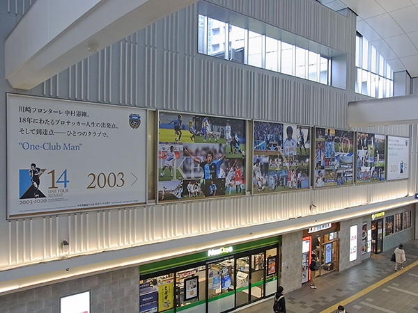 改札前のパネル6面を、中村憲剛選手の18年間のプレー写真を使用したデザインに変更します。(1月下旬まで)