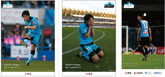 東急武蔵小杉駅を中心に、中村憲剛選手の現役生活を振り返るポスター(全12種)を掲出します。また、デジタルサイネージでもオリジナル動画を放映します(12月14日から1月3日までを予定)