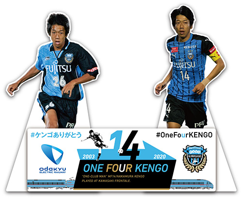 改札内にフロンターレ加入1年目の2003年、現役最終年となる2020年の中村憲剛選手の写真と並んで記念撮影ができる等身大パネルを設置します。(1月下旬まで)