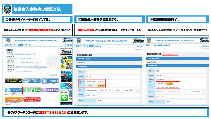 すでに入会・更新手続きを完了された方も後援会マイページより、選択した特典の変更が可能です。