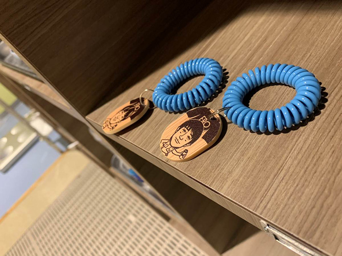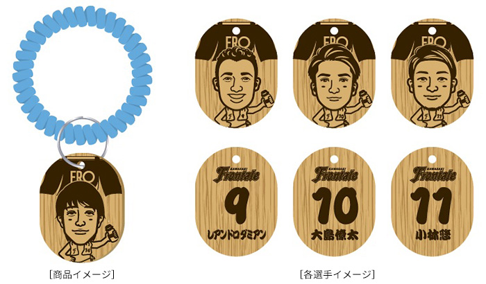 鍵などをなくさないように手首につける銭湯で馴染みのあるロッカーブレスレット。‟びよ~ん”と伸びる伸縮性のあるフロンターレブルーのブレスレットを採用。選手がおフロ(風呂)上がりに銭湯で牛乳を飲んでいる様子のデザインもポイントです!