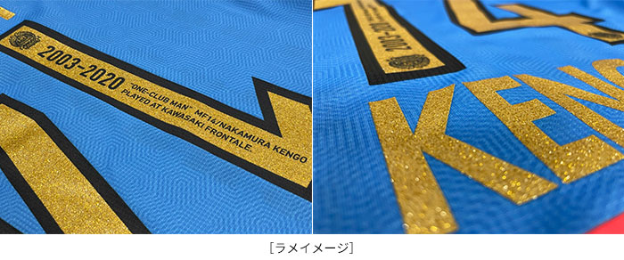 2020シーズンユニフォームフォントをゴールドのラメで加工し、背面のナンバーには‟ONE-CLUB MAN”などのケンゴだからこそできるデザインになっています。