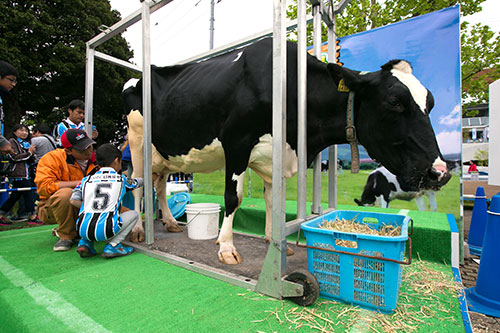 | 参加方法 | 会場内「フロンターレ牧場券売所」にて「牛の乳しぼり券」購入 ※お一人様1回につき1枚まで購入可能。 |