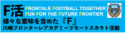 F活とは、サッカーを心から楽しみ(Fun)将来(For the future)川崎フロンターレ戦士になる事を目標に励んでいる、その様な可能性を秘めた(Frontier) 選手を発掘すべく、様々な意味を込めたリモートで行うスカウト活動です。