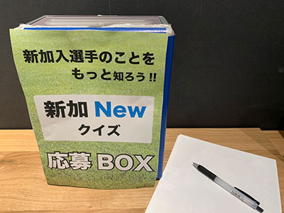 新加入選手と4月誕生日の車屋選手・鬼木監督にまつわるクイズに挑戦!キャンペーン期間内に答えてAZZURRO NERO店内にあるボックスに投函してください。抽選で新生活をサポートする素敵な商品をプレゼント。