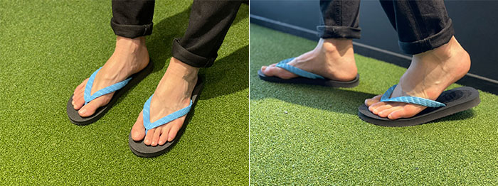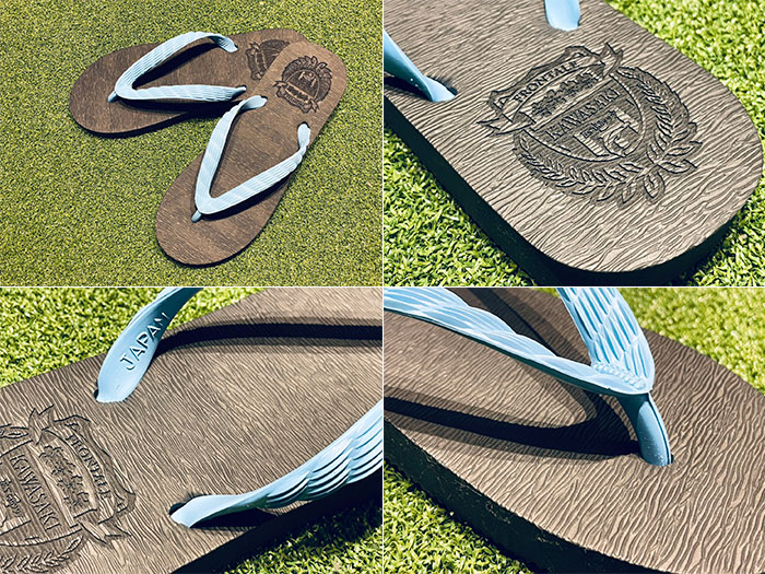 コーディネートに合わせやすいようにブラックをメインして、鼻緒はフロンターレブルーを使用。