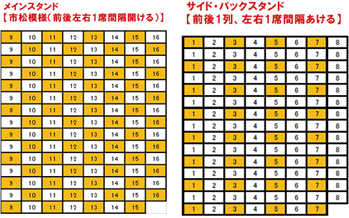 ※入場者数制限緩和の場合は販売席種・エリアの拡大、座席の間隔が変更となる可能性がございますので、改めて席割図をお知らせいたします。