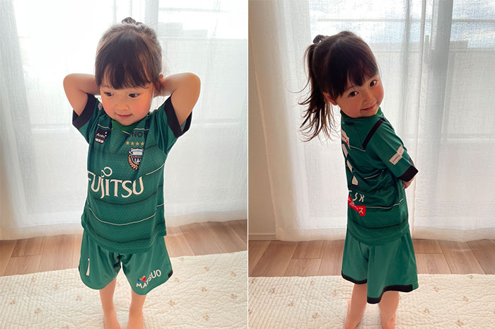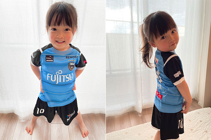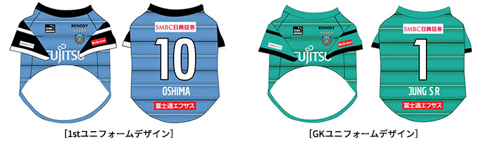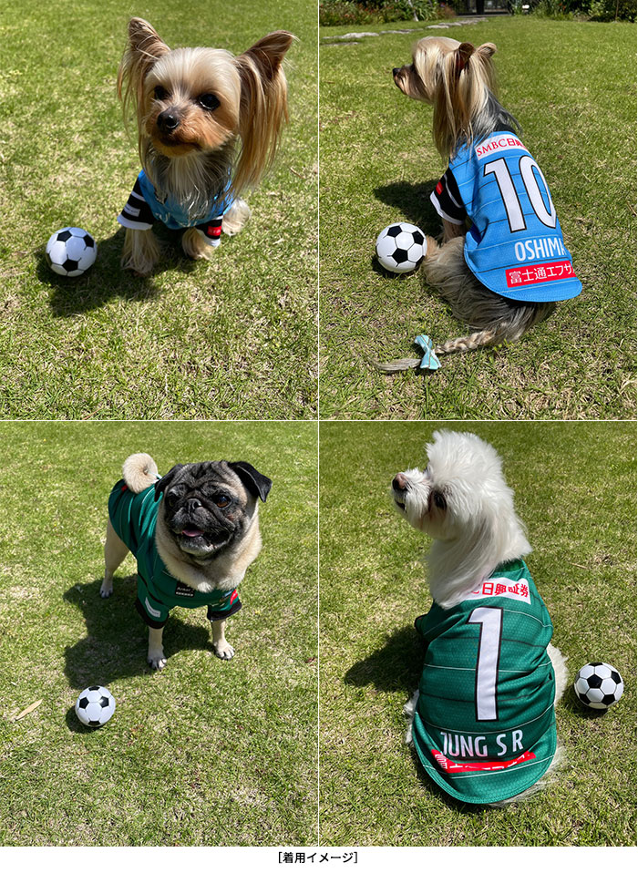 愛犬にお気に入り選手のネーム・ナンバーが入ったウェアを着せこみ、フロンターレファミリーの一員に!