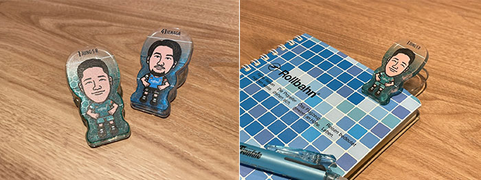 お菓子の袋や資料をまとめたり、メモを挟んだりと万能アイテム。全選手のイラストに背景はユニフォームデザインを採用。