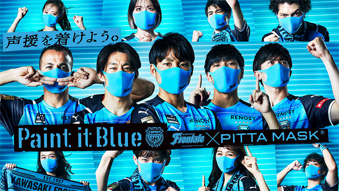 キービジュアルでは、選手・サポーターが一体となって「PITTA MASK FRONTALE BLUE」で川崎の街・スタジアムを青く染め上げ、まさに“Paint it Blue”となるイメージを表現しました。