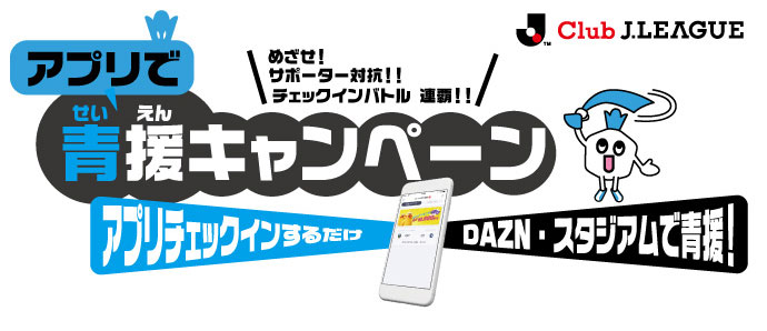 DAZN視聴と共に楽しめるコンテンツとして、Jリーグ公式アプリ「Club J.LEAGUE」を利用したチェックインキャンペーンを行います。