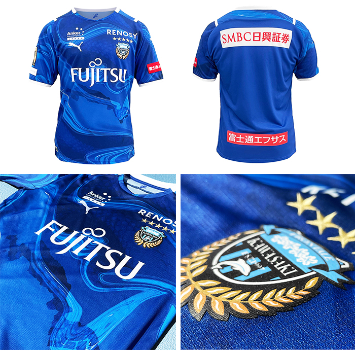 PUMAのグローバルデザインコンセプト“CRAFTED FROM CULTURE”に基づきホームタウンである川崎市の歴史からインスピレーションを受けた仕様に。川崎の水道給水開始100周年を祝した今シーズンのリミテッドユニフォーム。水の神とされている白蛇をグラフィックや首元の内側にも採用。グラフィックの中には3年連続で川崎を描いたデザインに。蛇口から流れ出る水とフロンターレのアグレッシブなサッカースタイルをリンクさせたグラフィックに仕上げました。
