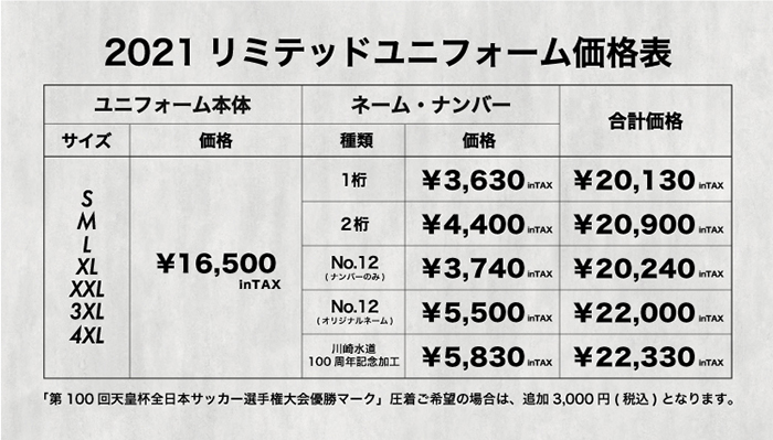 ※「第100回天皇杯全日本サッカー選手権大会優勝マーク」圧着ご希望の場合は、追加3,000円(税込)となります。