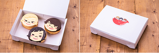 テイクアウト用に3個同時購入いただいた方には、ギターボーカル宮崎朝子さん描き下ろしスペシャルステッカーが貼られたBOXでお持ち帰りいただけます!!! |