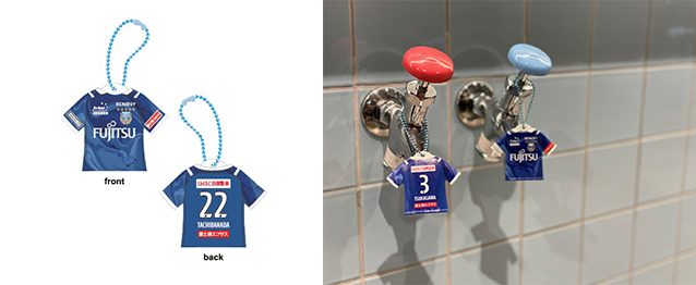 ユニフォームの立体感を再現し、まるで‟なびいている”かのような加工のキーホルダー。