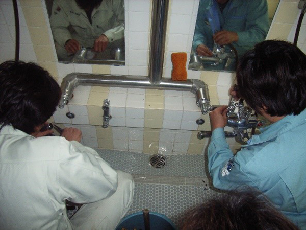 ①-9 「笑みはこぼしても水はこぼさない」水道管漏水修理のデモンストレーション