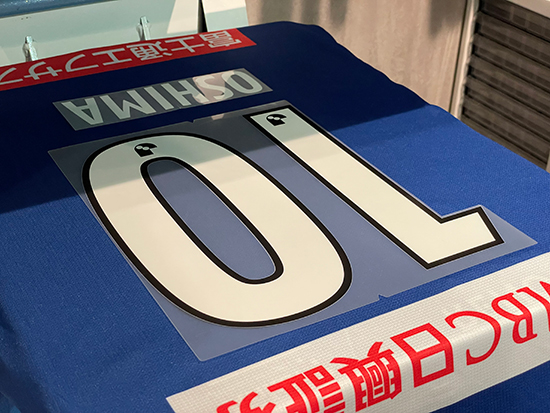 | 加工イメージ | 2021リミテッドユニフォームの背中に圧着加工を実施いたします。