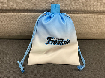 川崎市民の花である‟つつじ”をフロンターレブルーで表現したデザイン。とにかく女性が使いやすいと思ってもらえるようにフロンターレ要素をなくす!なくす!なくす!と何回も心に誓いながらも‟F”を入れてしまいました...。