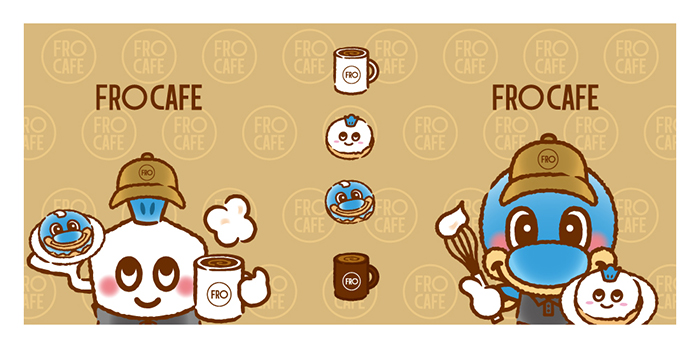 マスコット達がFRO CAFEのスタッフに!?FRO CAFE名物のドーナツとNEW YOKU BLENDを持ったマスコットがデザイン。これでNEW YOKU BLENDを飲めばより美味しくなるかも!?