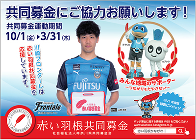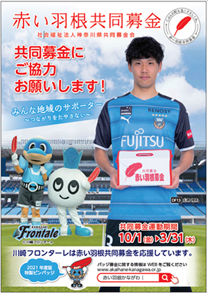 川崎フロンターレでは、社会福祉法人【神奈川県共同募金会】が本年度に実施する『赤い羽根共同募金』の川崎市内で行う募金運動に関して、今年度も協力することになりましたのでお知らせ致します。