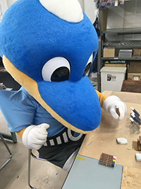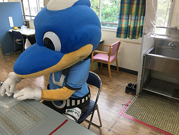 ~育桜福祉会わかたけ作業所について~ わかたけ作業所には、障害のある方々が生きがいを持って取り組むことができる作業科目の工夫がたくさんありました。スイッチの部品を分ける作業やキットパスやチョークの包装作業など細かい作業を1つ1つ丁寧に手際よく行われていました。ふろん太も説明を受け体験させていただいたのですが...なかなか難しく少し時間がかかってしまいました。自主製品の業務用ミシンを使用したオリジナルの刺繍が入ったハンカチやタオルは大人気だそうです。また、送迎車などはなく、地域の方々に支えられながら、ほとんどの方は歩きなど自力で通所されています。