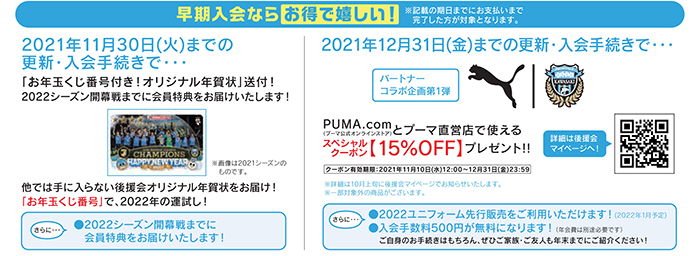 川崎フロンターレ公式ファンクラブ「川崎フロンターレ後援会」では、下記の日程で2022シーズンの後援会(ファンクラブ)入会受付を開始いたします。
